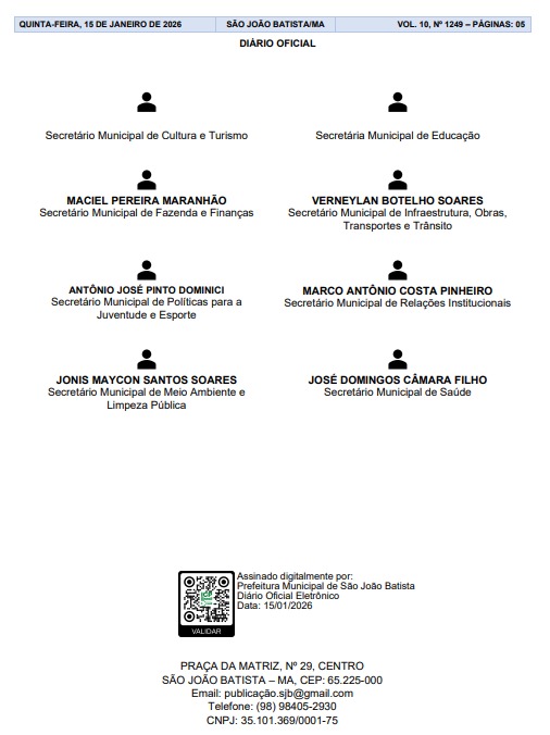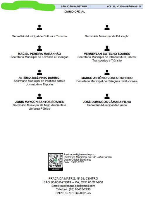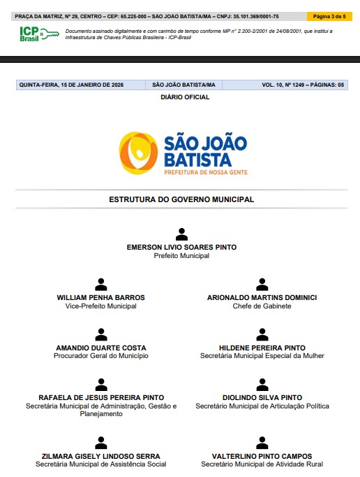 – *Jonis Maycon Santos Soares* – primo do prefeito, apontado como responsável pela Secretaria de Relações Institucionais ou Meio Ambiente e Limpeza Pública.